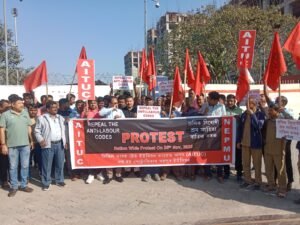 কেন্দ্ৰীয় চৰকাৰৰ শ্ৰমিক বিৰোধী শ্ৰম সংহিতা বলবৎ কৰাৰ বিৰুদ্ধে দেশজোৰা প্ৰতিবাদ