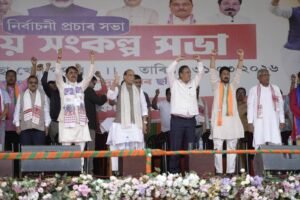 ৰঙিলী বাৰ্ত্তাসেৱা- দেশৰ কেন্দ্ৰীয় প্ৰতিৰক্ষা মন্ত্ৰী ৰাজনাথ সিঙে দেৰগাঁৱ আৰু তেজপুৰত অহা ৯ এপ্ৰিলত অনুষ্টিত হ’ব লগা বিধানসভা নিৰ্বাচনৰ নিৰ্বাচনী প্ৰচাৰ অভিযান চলায়। ‘কংগ্ৰেছে দেশৰ সীমান্তৰ গাঁওসমূহক তথা অসমক ভাৰতৰ অন্তিম গাঁও বুলি কৈছিল। কিন্তু বিজেপিয়ে অসমক প্রথমখন গাঁৱৰ স্বীকৃতি দিছে। কংগ্ৰেছৰ দীঘলীয়া শাসনকালত উপেক্ষা কৰাৰ বিপৰীতে অটল বিহাৰী বাজপেয়ীয়ে অসম আৰু উত্তৰ-পূৰ্বাঞ্চলৰ বিকাশৰ কাম আৰম্ভ কৰিছিল।’ ঢোলত চাপৰ মাৰি তেজপুৰত নির্বাচনী প্ৰচাৰ চলাই এই মন্তব্য কৰে প্ৰতিৰক্ষা মন্ত্ৰী ৰাজনাথ সিঙে। ভগা ভগা অসমীয়া ভাষাত ভাষণ আৰম্ভ কৰি উপস্থিত ৰাইজক এনডিএ প্রার্থীসকলৰ হকে ভোটদানৰ আহ্বান জনালে প্ৰতিৰক্ষা মন্ত্ৰী সিঙে। তেজপুৰ কলেজিয়েট হাইস্কুল খেলপথাৰত  অসম বিধানসভা নিৰ্বাচনৰ বিজয় সংকল্প সভাত এনডিএ প্রার্থীৰ বাবে নিৰ্বাচনী প্ৰচাৰ সভাত অংশ লয় কেন্দ্ৰীয় প্ৰতিৰক্ষা মন্ত্রীজনে। তেওঁ অসম মা কামাখ্যা, শ্রীমন্ত শংকৰদেৱ, বীৰ লাচিত বৰফুকন আৰু পৱিত্ৰ ব্ৰহ্মপুত্ৰৰ ৰাজ্য বুলি উল্লেখ কৰি অসম চাহৰ সুগন্ধিৰ বাবে বিখ্যাত বুলিও মন্তব্য কৰে। কংগ্ৰেছৰ শাসনকালত ৰাজ্যত বোমা বিস্ফোৰণৰ ঘটনাই সংবাদ শিৰোনাম দখল কৰিছিল বুলি উল্লেখ কৰি সিঙে কয় যে বিজেপিৰ কাৰ্যকালত অসমৰ সকলো দিশতে উন্নয়ন হৈছে। ড° হিমন্ত বিশ্ব শৰ্মাৰ নেতৃত্বত অসমৰ বিকাশ ক্ষিপ্রগতিত আগবাঢ়িছে বুলিও মন্তব্য আগবঢ়াই ৰাজনাথ সিঙে অসমত এতিয়া শান্তি আৰু সমৃদ্ধি বিৰাজ কৰিছে বুলি মন্তব্য কৰে। উল্লেখ্য যে তেজপুৰৰ এনডিএ তথা অগপ প্রার্থী পৃথ্বিৰাজ ৰাভা আৰু নদুৱাৰৰ বিজেপি প্রার্থী পদ্ম হাজৰিকাই অংশগ্রহণ কৰা এই সভাত কংগ্ৰেছৰ কাৰ্যকালত অসম অবৈধ বিদেশীৰে ভৰি পৰাৰ লগতে বেদখল হোৱাৰ কথাও প্ৰতিৰক্ষা মন্ত্ৰীজনে উল্লেখ কৰে।