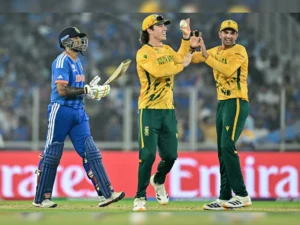 ৰঙিলী বাৰ্ত্তাসেৱা– ছুপাৰ এইটৰ প্ৰথমখন মেচত দক্ষিণ আফ্রিকাৰ বিৰুদ্ধে ৭৬ ৰানত পৰাস্ত ভাৰত । চলিত টি-২০ বিশ্বকাপত সূর্যবাহিনীৰ এইটো প্ৰথম পৰাজয়। দক্ষিণ আফ্রিকাই বান্ধি দিয়া ১৮৮ ৰানৰ লক্ষ্য অনুসৰণ কৰিব আহি আৰম্ভণিৰে পৰাই বিপক্ষৰ বলাৰৰ সন্মুখত বেছি সময় তিস্তিব নোৱাৰিলে ভাৰতীয় দলটোৱে । বিগত তিনিখন মেচত শূন্যতে আউট হোৱা অ’পেনাৰ অভিষেক শৰ্মাই পুনৰ দৰ্শকক হতাশ কৰিলে। শিৱম ডুবে (৪২)ৰ বাদে ভাৰতীয় দলৰ কোনো এগৰাকী বেটাৰে ২০ৰ ডেওনা পাৰ কৰিব নোৱাৰিলে। গ্রুপ পৰ্যায়ত দুর্দান্ত প্ৰদৰ্শন কৰা দলটোৰ বেটাৰসকলে প্রটিয়াজ বাহিনীৰ সন্মুখত ছন্দ হেৰুৱায়। যাৰ ফলত ১৮.৫ অভাৰত ১১১ ৰানতে আটাইকেইটা উইকেট হেৰুৱাই স্তব্ধ হৈ পৰে ভাৰত। আহমেদাবাদৰ নৰেন্দ্ৰ মোদী ষ্টেডিয়ামত অনুষ্ঠিত মেচখনত প্রথমে টছত জিকি দক্ষিণ আফ্রিকাই বেটিঙৰ সিদ্ধান্ত লয়। ইনিংছ আৰম্ভ কৰি প্ৰটিয়াজ বাহিনীৰ দুয়োগৰাকী অ’পেনাৰ আৰু টপ অৰ্ডাৰ বেটাৰে সোনকালেই পেভিলিয়নমুখী হ’লেও মিডিল অৰ্ডাৰ ডেৱাল্ড ব্রেভিছ, ডেভিদ মিলাৰ আৰু ট্রিষ্টান ষ্টাবৰ দর্শনীয় বেটিঙেৰে নিৰ্ধাৰিত ২০ অভাৰত দলটোৱে ৭ উইকেট হেৰুৱাই ১৮৭ ৰান সংগ্ৰহ কৰে। ব্রেভিছে ২৯টা বলত ৩টা ছয় আৰু ৩টা চাৰিৰে ৪৫ ৰান, মিলাৰে ৩৫টা বলত ৭টা চাৰি আৰু ৩টা ছয়েৰে ৬৩ ৰান আৰু ষ্টাবে ২৪টা বলত এটা চাৰি আৰু তিনিটা ছয়েৰে ৪৪ ৰানৰ বৰঙণি আগবঢ়ায়। ভাৰতৰ হৈ যশপ্রীত বুমৰাহে ৩টা উইকেট আৰু অর্শদীপ সিঙে ২টা উইকেট দখল কৰে। ডেভিদ মিলাৰক প্লেয়াৰ অৱ দ্য মেচ সন্মান প্রদান কৰা হয়।