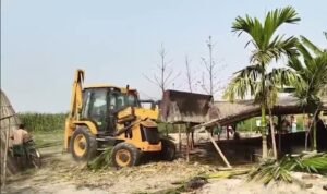 ৰঙিলী বাৰ্ত্তাসেৱা- কামৰূপৰ  পলাশবাৰী সমষ্টিৰ মহমাৰাদিয়া আৰু শিয়ালমাৰী চৰত চলিল বৃহৎ উচ্ছেদ অভিযান।  কামৰূপৰ পলাশবাৰী সমষ্টিৰ দক্ষিণ সৰু বংশৰ মৌজাৰ ব্ৰহ্মপুত্ৰৰ চৰাঞ্চলত থকা খিলঞ্জীয়া লোকৰ ম্যাদীৰ লগতে চৰকাৰী দহ সহস্রাধিক বিঘা ভূমি বেদখল কৰি নিশাৰ ভিতৰতে অচিনাকি লোকে সাজিছিল ঘৰ। মহাবাহু ব্ৰহ্মপুত্ৰৰ চৰাঞ্চল মহমাৰাদিয়াত পলাশবাৰী ৰাজহ চক্ৰ বিষয়া অংকিতা শৰ্মা আৰু পলাশবাৰী আৰক্ষী আৰু শুৱালকুছি নদী আৰক্ষীৰ লগতে অর্ধসামৰিক বাহিনীৰ উপস্থিতিতে উচ্ছেদ চলোৱা হয়। প্রথমে ৫০০ৰো অধিক ভূমিত এক্সকেভেটৰেৰে মাকৈ আৰু জলকীয়াৰ খেতি নষ্ট কৰি বেদখলমুক্ত কৰা হয়। খিলঞ্জীয়া গুৱালক উদণ্ড মিঞাই শাৰীৰিকভাৱে প্ৰহাৰ কৰি দীৰ্ঘদিন ধৰি বেদখল কৰি আছিল। সেই স্থানত উচ্ছেদ অভিযান চলোৱাত ভুক্তভোগী কৃষক আৰু গুৱালসকলে ৰাজ্যৰ মুখ্যমন্ত্রী ড° হিমন্ত বিশ্ব শর্মাক ধন্যবাদ দিয়াৰ লগতে পলাশবাৰী আৰক্ষী প্ৰশাসনক বিশেষভাৱে ধন্যবাদ জ্ঞাপন কৰে। আগতীয়াকৈ উচ্ছেদৰ উমান পাই সন্দেহজনক শতাধিক পৰিয়ালে ঘৰ ভাঙি নাৱেৰে উধাও হয়। উল্লেখ্য যে দশক দশক ধৰি মহমাৰাদিয়াত অসমীয়া খিলঞ্জীয়া কৃষক আৰু গুৱালসকলে পৈতৃক ম্যাদী ভূমিসমূহত কৃষিকৰ্মৰে জীৱন অতিবাহিত কৰি আহিছে। কিন্তু বিগত কিছুদিন ধৰি সেই স্থানত নিশাৰ ভিতৰতে নাৱেৰে আহি অচিনাক্ত তথা সন্দেহজনক লোকে ভূমিসমূহ বেদখল কৰি বীৰত্ব প্ৰদৰ্শন কৰি আহিছে। অস্থায়ী বাসগৃহ নিৰ্মাণ কৰাৰ উপৰি দাদাগিৰিৰে বিভিন্ন ধৰণৰ খেতি যেনে- ধান, মাকৈ সৰিয়হকে আদি কৰি বিভিন্ন ৰবিশস্যৰ খেতি কৰিছে মিঞাসকলে। আজি যন্ত্রচালিত নাৱেৰে ঘটনাস্থলীত উপস্থিত হয় পলাশবাৰী ৰাজহ চক্ৰৰ চক্ৰ বিষয়া অংকিতা শৰ্মাৰ লগতে বৃহৎ আৰক্ষীৰ দল। দক্ষিণ কামৰূপৰ পলাশবাৰী সমষ্টিৰ মহমাৰাদিয়াত আৰক্ষীয়ে কৰা উচ্ছেদ অভিযান কাইলৈ চলোৱা হ’ব। এই অভিযান ধাৰাবাহিকভাৱে চলি থাকিব।