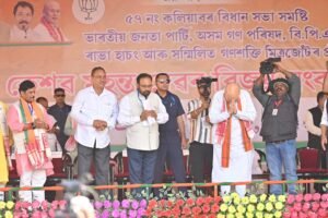তেওঁ ৰাহুল গান্ধীক তাচ্ছিল্য কৰি কয় যে তেওঁ আজি অসম ভ্রমণলৈ আহি ডাঙৰ ডাঙৰ ভাষণ আগবঢ়াইছে। তেওঁক মই প্রশ্ন কৰিছো তেওঁলোকৰ পোন্ধৰ বছৰীয়া শাসন কালত অসমৰ বাবে কি কৰা হৈছিল। কেন্দ্ৰত মনমোহন সিঙৰ চৰকাৰ আৰু অসমত কংগ্ৰেছ চৰকাৰ আছিল। অসমৰ বিকাশৰ বাবে সেই পোন্ধৰ বছৰত কি কৰা হ’ল বুলি প্ৰশ্ন কৰি কয় যে তেওঁলোকে কেবল অসমক দিছিল ১ লাখ ২৮ হাজাৰ কোটি টকা। আমাৰ নেতা নৰেন্দ্ৰ মোদীয়ে কেবল দহ বছৰতে ৯ লাখ ৭৮ হাজাৰ কোটি টকা আগবঢ়াইছেবুলি উল্লেখ কৰি কয় যে ৰাজ্যবাসীয়ে তৃতীয়বাৰৰ বাবে উন্নয়নৰ বাবে এন ডি এক সমর্থন আগবঢ়াব লাগে বুলি উল্লেখ কৰে। প্রণিধানযোগ্য যেবৃহস্পতিবাৰে কলিয়াবৰত নির্বাচনী প্রচাৰ সভাত অংশগ্রহণ কৰে কেন্দ্রীয় গৃহমন্ত্রী অমিত শ্বাহে। কলিয়াবৰৰ মিছা হাইস্কুল খেলপথাৰত অনুষ্ঠিত নির্বাচনী সভাত এন ডি এ তথা অগপৰ প্রার্থী কেশৱ মহন্তৰ হৈ নির্বাচনী প্রচাৰ সভাত অংশগ্রহণ কৰে কেন্দ্রীয় গৃহমন্ত্রীগৰাকীয়ে। কলিয়াবৰত আয়োজন কৰা বিশাল নির্বাচনী সভাত মহাপুৰুষ শ্রীমন্ত শংকৰদেৱ, মাধৱদেৱক স্মৰণ কৰি কেন্দ্ৰীয় গৃহমন্ত্রীশ্বাহে ভাষণত ঘোষণা কৰে যে সূর্য-চন্দ্র থকালৈকে অগপ-বিজেপিৰ বন্ধুত্ব সদায় থাকিব। উন্নয়নৰ প্রসংগ উত্থাপন কৰি গৃহমন্ত্রী শ্বাহে কয় যে নৰেন্দ্ৰ মোদীৰ চৰকাৰৰ দিনত দেশৰ অভূতপূর্ব উন্নয়ন হৈছে। অসমো পিছ পৰি থকা নাই। অসমত সকলো ঔৰতে উন্নয়ন হৈছে। এই উন্নয়নৰ ধাৰা বৰ্তাই ৰাখিবলৈ তৃতীয়বাৰৰ বাবে এন ডি এৰ চৰকাৰ প্ৰতিষ্ঠাৰ হেতুকে কলিয়াবৰত হাতীৰ ছবিত ভোট দিব লাগিব।