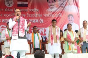 ৰঙিলী বাৰ্ত্তাসেৱা- ৰঙিয়াৰ তৰণী আৰিমত্ত মিনি ষ্টেডিয়ামত আয়োজিত বিজেপিৰ বিশাল নির্বাচনী সভাত স্থানীয় বিধায়ক তথা বিজেপি প্রার্থী ভবেশ কলিতাৰ হৈ কেন্দ্রীয় কৃষিমন্ত্রী শিৱৰাজ সিং চৌহানে নির্বাচনী প্রচাৰ চলায়। প্রতিকূল বতৰকো নেওচি ১০ সহস্রাধিক লোকে সভাত অংশগ্ৰহণ কৰে। সভাস্থলীত উপস্থিত কেন্দ্রীয় মন্ত্ৰীগৰাকীক দলীয় কর্মী-সমর্থকসকলে আদৰণি জনায়। সভাত মন্ত্রী চৌহানে অসমৰ বৰ্তমান বিৰামহীন প্ৰগতিৰ প্ৰশংসা কৰি কয় যে প্রধানমন্ত্রী নৰেন্দ্ৰ মোদী আৰু ৰাজ্যৰ মুখ্যমন্ত্রী ড° হিমন্ত বিশ্ব শৰ্মাৰ নেতৃত্বত ৰাজ্যত অভূতপূর্ব উন্নয়ন হৈছে। মধ্যপ্রদেশত মোক মামা বুলি জানে আৰু অসমতো মুখ্যমন্ত্ৰীক সেইদৰে মামা বুলি মৰম কৰে। অসমখন দেশৰ অন্যতম আগশাৰীৰ ৰাজ্য হিচাপে পৰিগণিত হৈছে। লগতে যোগাযোগ, শিক্ষা, স্বাস্থ্য, কৃষি আৰু উদ্যোগ আদি বিভিন্ন ক্ষেত্ৰত চৰকাৰে গ্ৰহণ কৰা পদক্ষেপসমূহৰ বিষয়ে উলেখ কৰে। আত্মসহায়ক গোটক অনুদান, অৰুণোদয় আঁচনি আদিৰ দ্বাৰা মহিলা সবলীকৰণৰ ক্ষেত্ৰতো চৰকাৰে বিভিন্ন উদ্যোগ গ্রহণ কৰিছে। মন্ত্রী চৌহানে ৰাইজক ভৱেশ কলিতাক ভোট দি পুনৰ বিধায়ক হিচাপে নির্বাচিত কৰাৰ লগতে ড° শৰ্মাক মুখ্যমন্ত্রী হিচাপে নির্বাচিত কৰিবলৈ আহ্বান জনায়।