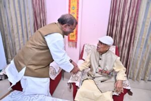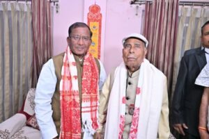 As a part of the day, Governor Shri Acharya later visited the residence of Hony Capt. Jatindra Chandra Roy at Satgaon in Guwahati, where he felicitated him with a Prasansha Patra (appreciation letter) and a traditional phulam gamosa in recognition of his invaluable contribution to national security.