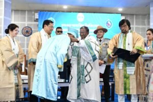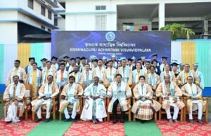 Defining Indian culture in one word as “spirituality,” Shri Acharya said spirituality elevates education beyond livelihood to become a guiding philosophy of life. He cited the ancient maxim “Sa Vidya Ya Vimuktaye”, stating that true knowledge is that which liberates from all bandages. He expressed happiness that Krishnaguru Adhyatmic Viswavidyalay exemplifies this philosophy by integrating education with spirituality and service.