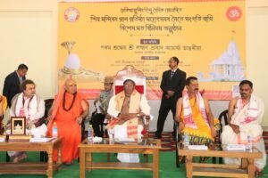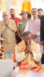 Guwahati,Rongili Barta: Assam Governor Shri Lakshman Prasad Acharya attended the Pran Pratishtha ceremony of the newly constructed Shiv Mandir at Hindu Vedic Kshetra, Dhekiajuli, in Sonitpur district, in the presence of Minister for Health and Family Welfare Ashok Singhal.