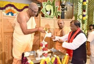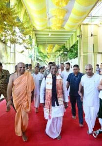 Guwahati,Rongili Barta: On the auspicious occasion of Shri Krishna Janmashtami, Assam Governor Shri Lakshman Prasad Acharya, visited the Hare Krishna Mandir at North Guwahati today, and offered prayers for peace, harmony, and prosperity for all sections of society.