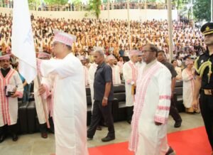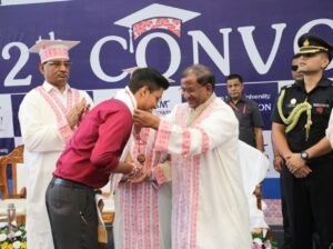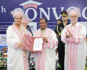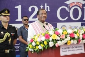 Guwahati,Rongili Barta: Assam Governor Shri Lakshman Prasad Acharya addressed the 12th convocation of Assam Down Town University at its Panikhaiti campus today. The Governor congratulated the graduating students, praising their hard work and dedication that had culminated in this momentous occasion.