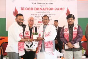 Guwahati, Rongili Barta: As part of ‘Sewa Sankalp Saptah’, Lok Bhavan, Assam under the leadership of Governor Shri Lakshman Prasad Acharya, in association with the Indian Red Cross Society, Assam State Branch, organized a blood donation camp at the IRCS at Chandmari.