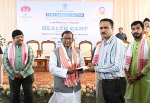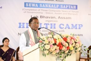 Guwahati, Rongili Barta: In a public outreach initiative under Sewa Sankalp Saptah organised by Lok Bhavan, Assam, Governor, Shri Lakshman Prasad Acharya, today attended a Health Camp held at Jahajghat LP School, Guwahati. The camp was organised by Lok Bhavan, Assam in association with the National Health Mission (NHM), Assam, to enable people to receive accessible, affordable and inclusive healthcare services.