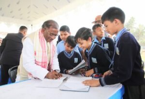 Guwahati,Rongili Barta:  Assam Governor Shri Lakshman Prasad Acharya today attended the 9th edition of Pariksha Pe Charcha-2026, an inspiring interactive programme of Prime Minister Narendra Modi with the examinees as he listened to the Prime Minister by remaining present with the students at PM Shri Kendriya Vidyalaya, Borjhar, Guwahati.